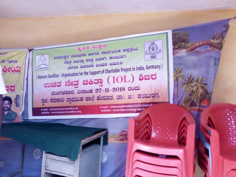 Free Eye camp organised by Basaveshwar Teaching & General Hospital in association with Harama Bandhan- Organization for the support of charitable Project in India, Germany on 27.11.2018 at Govt Primary School, Tq: Dist : Kalaburagi